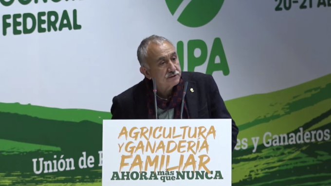 Pepe Álvarez ha realizado estas declaraciones durante el acto de clausura del 10 Congreso de la Unión de Pequeños Agricultores y Ganaderos de UGT (UPA-UGT), que ha reelegido a Lorenzo Ramos como Secretario General, y donde ha señalado que el sindicato “lleva mucho tiempo trabajando por las explotaciones agrarias de carácter familiar. UPA ha sabido mantener las explotaciones agrarias familiares, que son un elemento fundamental desde el punto de vista del sostenimiento de la población para la España vaciada, ya que suponen el freno a la huida de las zonas rurales”.