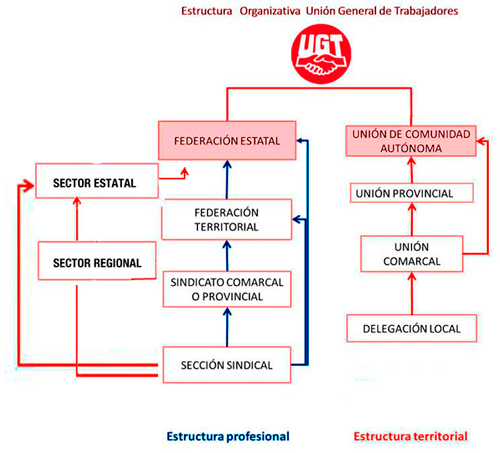 La Confederación es la confluencia de las dos estructuras y desde la que se marcan las grandes líneas de actuación y gestión de UGT.