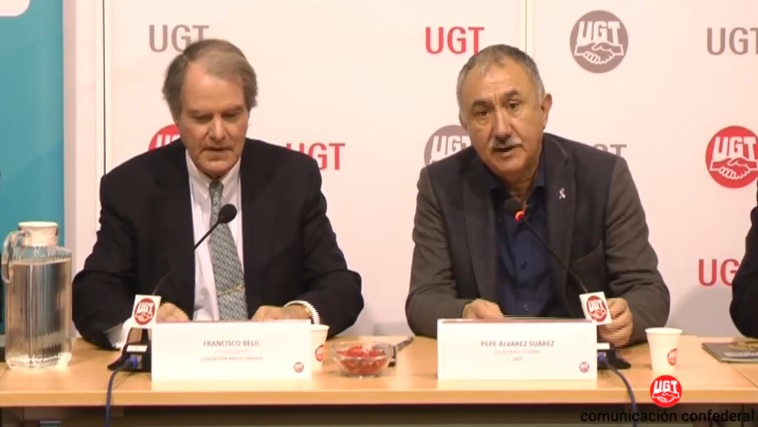 Pepe Álvarez, Secretario General de la Unión General de Trabajadores (UGT), junto a Francisco Belil, Vicepresidente de la Fundación Bertelsmann, han sellado hoy el acuerdo de adhesión de UGT a la Alianza para la Formación Profesional Dual.