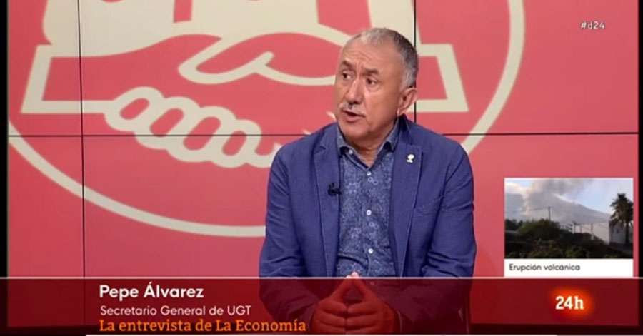Pepe Álvarez anuncia en el canal 24 horas de RTVE que el sindicato pedirá esta medida en la reunión de esta tarde con el Gobierno y anuncia movilizaciones si no se llega a un acuerdo tripartito para derogar las reformas laborales y aumentar el SMI