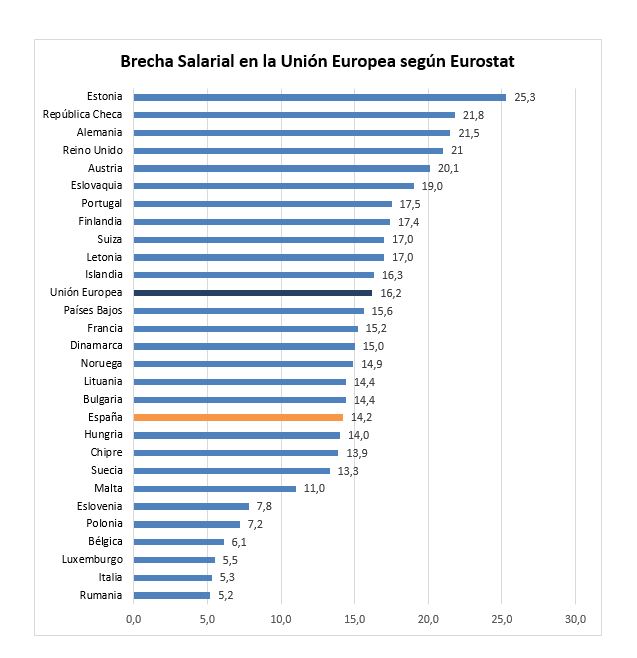 • La Comisión Europea, a través de Eurostat, denuncia una brecha salarial del 16,2% de media en la UE.