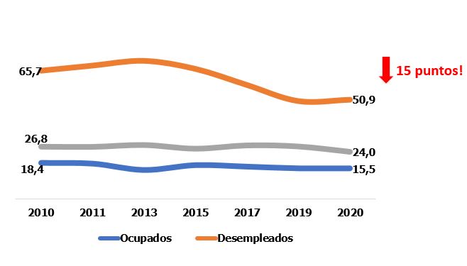 Tal limitación se demuestra en el uso que hacen de Internet las personas desempleadas para buscar un empleo, que descendido un 15% en la última década, cuando en este tiempo es evidente la popularización de este medio como método de prospección de un nuevo puesto de trabajo.