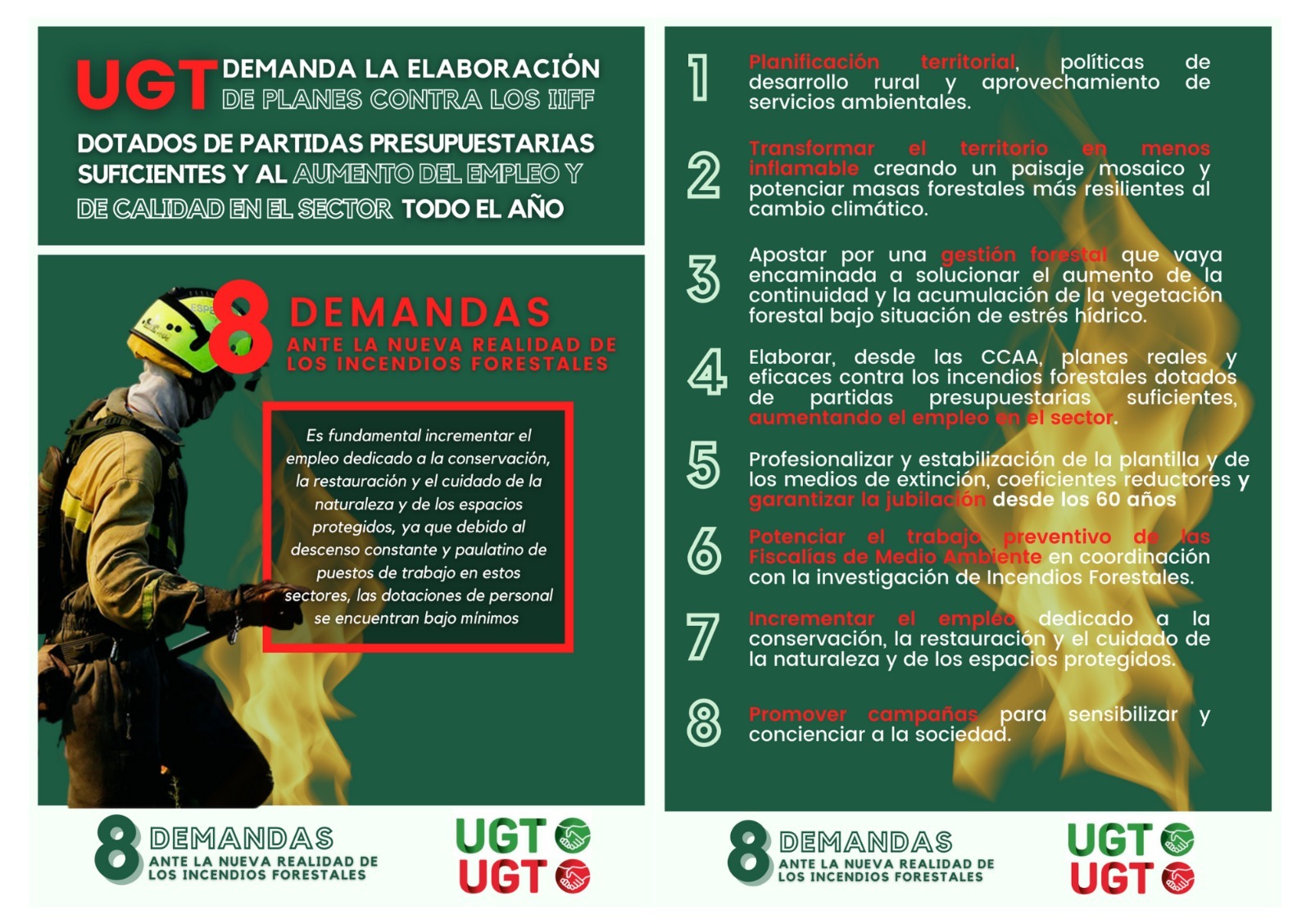 UGT demanda también potenciar el trabajo preventivo de las Fiscalías de Medio Ambiente, en coordinación con la investigación de incendios forestales que realizan los agentes forestales, y promover campañas para sensibilizar y concienciar a la sociedad sobre el cambio climático.