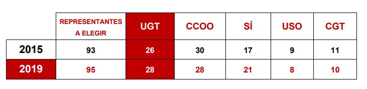 El 17 de diciembre, se realizaron elecciones en los centros de Madrid, Sant Cugat, Las Palmas, Tenerife, Córdoba, Granada, Málaga, Teruel, Huesca, Cantabria, Toledo, Ávila, Salamanca, Segovia, Girona, Ourense, Bilbao, San Sebastián, Vitoria, Alicante y Valencia. En total se elegían a 95 delegados de personal y miembros de comités de empresa, de los cuales UGT debía renovar a 28 de ellos para mantener la representatividad que los trabajadores y trabajadoras de la CRTVE nos otorgaron en las anteriores elecciones sindicales, aunque en esta ocasión Vitoria sumaba dos representantes más al conjunto de los centros al pasar de uno a tres respecto a las elecciones de 2015. No solo se han revalidado esos 28 representantes, además UGT suma 2 delegados más de los que ya tenía en estos centros de trabajo:
