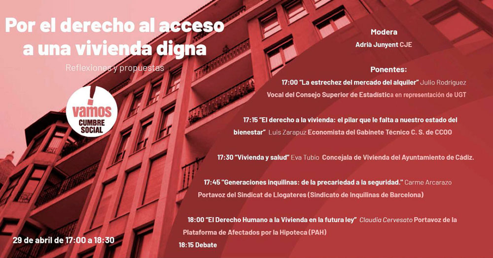 La Cumbre Social Estatal debatirá sobre la situación de la vivienda