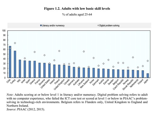 La OCDE, a través de su último estudio sobre la efectividad de la formación entre adultos (Getting Skills Right) da un tirón de orejas a España y sitúa los niveles de competencias digitales de los trabajadores españoles entre los peores del mundo occidental.