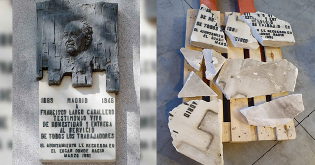 4. La ultraderecha en el Ayuntamiento de Madrid arrastró a las representaciones políticas de la derecha (Partido Popular y Ciudadanos), con planteamientos propios de la dictadura franquista, a la retirada de la dedicatoria de las calles de Madrid a Largo Caballero y a Indalecio Prieto, así como de la placa conmemorativa en el lugar de nacimiento de Largo Caballero en la Plaza de Chamberí, obra del escultor Pepe Noja.