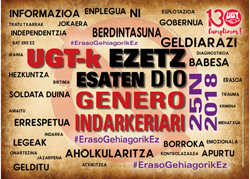 UGT y CCOO destacan la importancia de luchar contra la violencia de género desde el ámbito laboral, donde consideran que es necesario reforzar la acción sindical, la formación y la sensibilización para alcanzar la igualdad real y efectiva de mujeres y hombres, potenciar la negociación colectiva, con medidas de acción positiva y planes de igualdad para difundir y mejorar los derechos laborales y la igualdad de oportunidades, así como la colaboración y actuación con otras organizaciones como las administraciones públicas, asociaciones de mujeres, etc para erradicar todo tipo de violencia contra las mujeres.