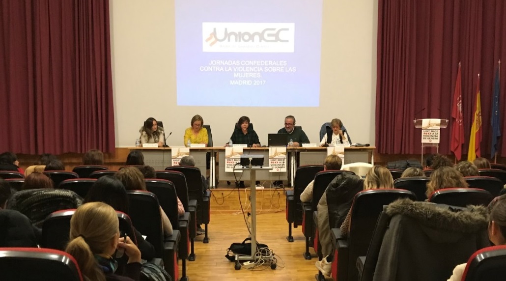 Intervienen: Francisco Javier Nodar Rodríguez, Rosalía Rodríguez Aparicio, Lara Esteve Mallent y Amalia Fernández Doyague, Modera: Marta Borraz, en la I Jornada Confederal contra la Violencia sobre las Mujeres, realizada en el EJB