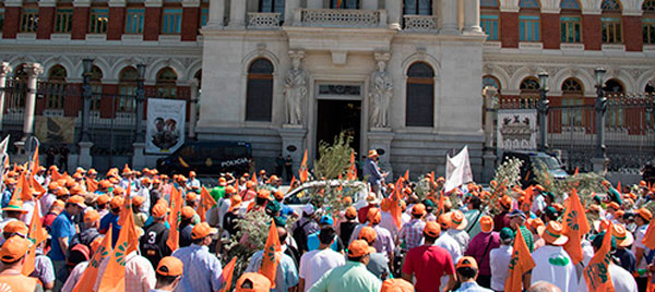 El caso más paradigmático es el del olivar tradicional y de montaña, cuya existencia está en peligro sin este tipo de ayudas. De hecho, la mayor parte de los productores que han acudido hoy a la convocatoria de la Unión de Pequeños Agricultores y Ganaderos frente al Ministerio han sido olivareros con producciones en pendiente, quienes ven peligrar su supervivencia por la discriminación que sufren. Y no son pocos, España es el primer productor mundial y los olivos ocupan el 43,9% de las tierras de cultivos sólo en Andalucía. En Extremadura, por ejemplo, es el principal cultivo del secano de la región y en Castilla-La Mancha, el olivar tradicional es el mayoritario, siendo mínimo el grado de intensificación de este cultivo.