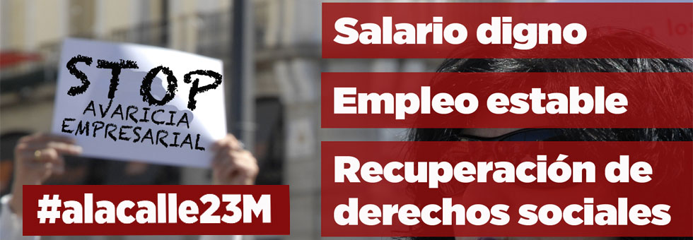 Por todo ello los sindicatos llaman a las trabajadoras y trabajadores a impulsar las movilizaciones participando en los actos convocados el 23 de marzo por unos salarios dignos, por empleo estable y por la recuperación de los derechos eliminados por las reformas del Gobierno del Partido Popular y por la avaricia empresarial.