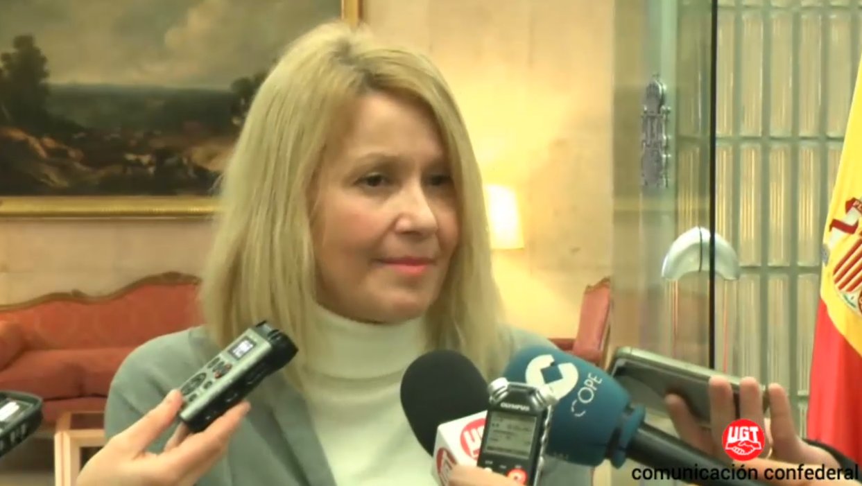 Declaraciones de Mari Carmen Barrera, Secretaria de Políticas Sociales, Empleo y Seguridad Social de UGT, tras la segunda reunión de la mesa de diálogo social sobre pensiones entre Gobierno e Interlocutores Sociales en el Ministerio de Empleo y Seguridad Social.