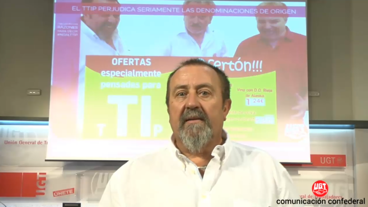 El Secretario de Formación de UGT, Sebastián Pacheco, rechaza el TTIP por atentar contra las Denominaciones de Origen de los productos alimenticios y rebajar así su calidad y protección.