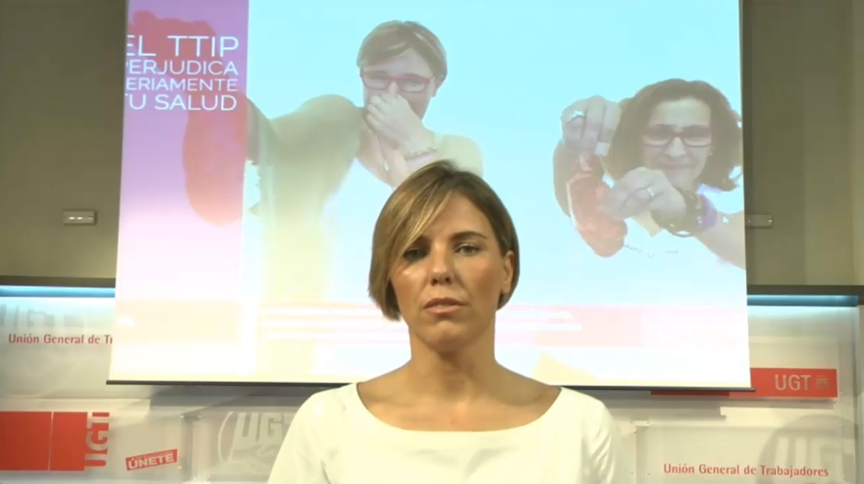 La Secretaria Confederal de UGT, Isabel Araque, muestra su rechazo al TTIP por arremeter contra la seguridad alimentaria y por abogar por un comercio irresponsable e injusto.