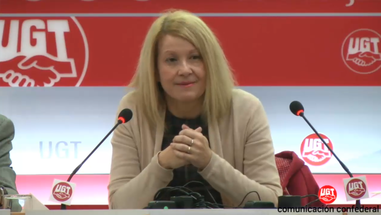Intervención de Mari Carmen Barrera (Secretaria de Políticas Sociales, Empleo y Seguridad Social de UGT) en la jornada Confederal sobre pensiones donde se ha analizado la situación actual del Sistema Público de Pensiones y se ha definido cuál va a ser la estrategia sindical y las perspectivas y retos del sindicato al respecto.