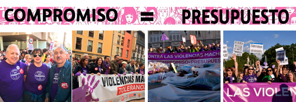 UGT, sus afiliadas y afiliados, participaron activamente en las movilizaciones convocadas en toda España bajo el lema “Compromiso=Presupuesto”. Movilizaciones para denunciar que, de los 200 millones comprometidos en el Pacto de Estado contra la Violencia de Género, el Gobierno solo ha destinado 80 millones en los Presupuestos Generales del Estado 2018.