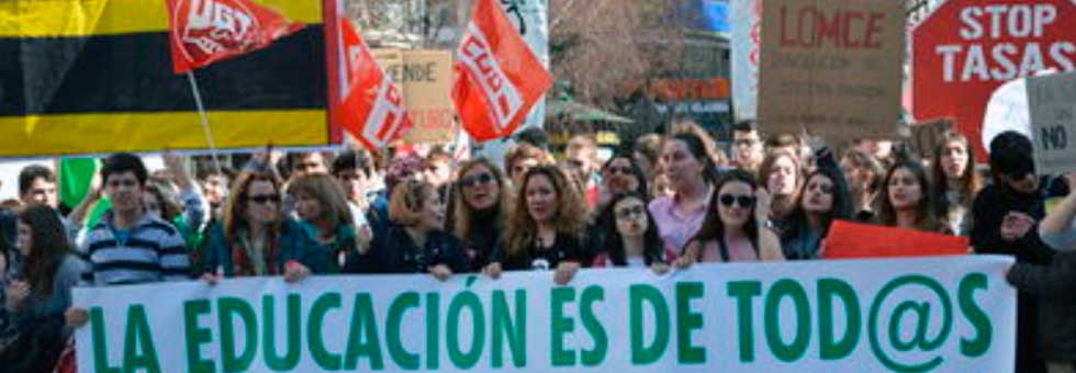 Los sindicatos UGT, CCOO, STES y CGT, las organizaciones de estudiantes Sindicato de Estudiantes, Frente de Estudiantes, Estudiantes en Movimiento y Faest, la Confederación Española de Asociaciones de Padres y Madres de Alumnos CEAPA y los Movimientos de Renovación Pedagógica consideran un éxito el seguimiento de la huelga general de educación que se está celebrando durante la jornada de hoy para exigir la reversión de los recortes, la dignificación de las condiciones de trabajo y la derogación de la LOMCE y las contrarreformas universitarias.