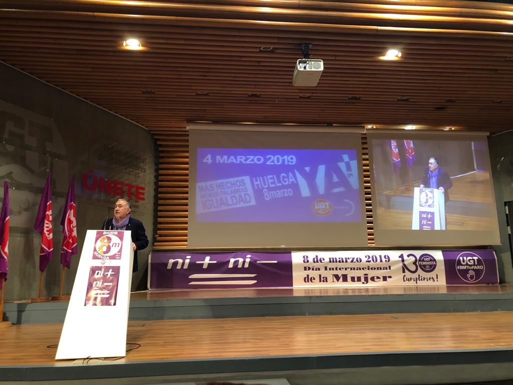 El Secretario General del UGT ha hecho estas declaraciones en el marco de una asamblea de delegados y delegadas del sindicato, que se ha celebrado en Madrid, y que ha finalizado con la entrega de Premios “8 de marzo” de 2019.