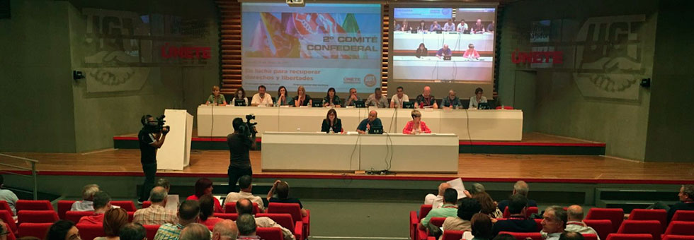 El 2º Comité Confederal Ordinario de UGT, celebrado hoy en Madrid, ha aprobado una declaración en la que aboga por el impulso del diálogo social bipartito y tripartito, con el fin de que la recuperación llegue a las personas, no solo a las empresas, y mejorar así la calidad de vida de la población española. Además, rechaza el proyecto de PGE para 2017, en su forma y contenido, instando a los grupos parlamentarios a modificarlo en el Congreso; y ha aprobado tres resoluciones de urgencia, en la defensa del derecho de huelga y contra la Ley Mordaza, en el impulso a la negociación colectiva a través de los convenios sectoriales, evitando los acuerdos o convenios con las empresas multiservicios, que recortan los derechos de los trabajadores; y en repulsa del atentado de Manchester.