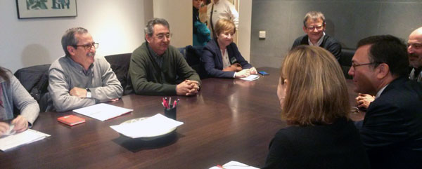 Una delegación de UGT y CCOO se ha reunido esta mañana con representantes del Grupo Parlamentario Socialista encabezada por su Secretario General, Miguel Ángel Heredia, para analizar la necesidad de derogar el artículo 315.3 del Código Penal, que condena el ejercicio del derecho fundamental de huelga.