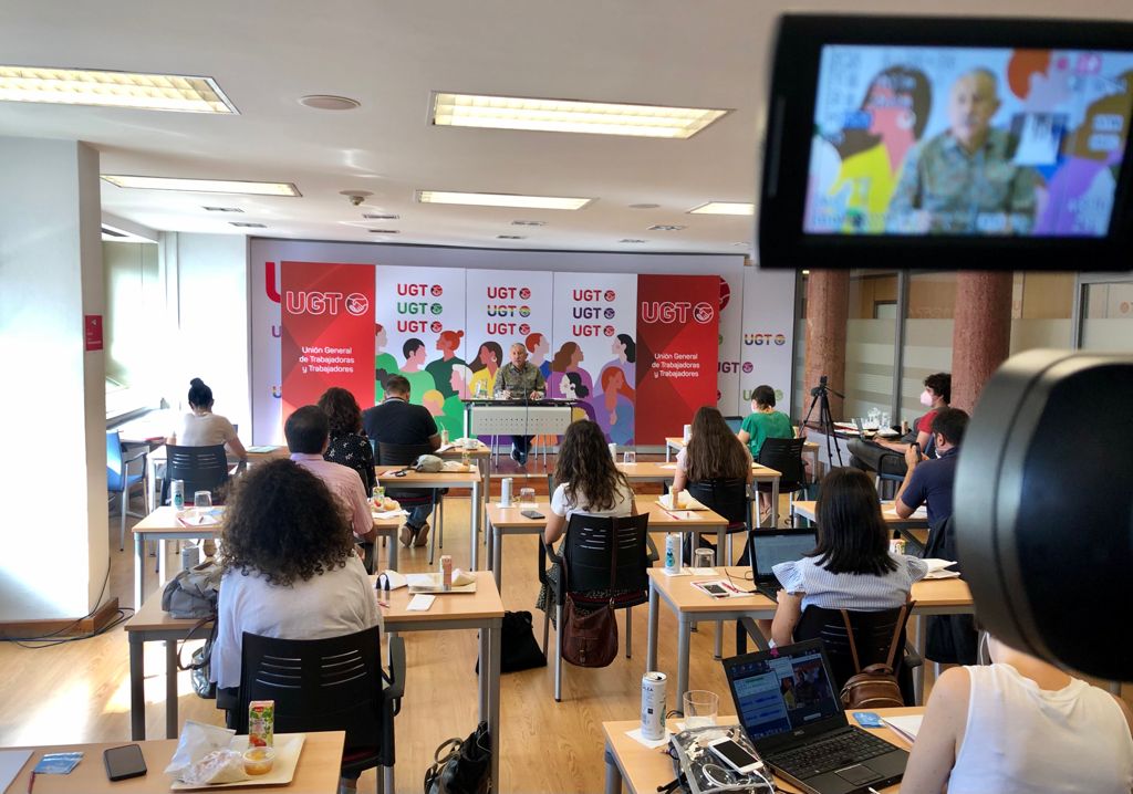 El secretario General de UGT, Pepe Álvarez, ha ofrecido en el día de hoy el tradicional encuentro informativo de inicio de curso para analizar la situación económica, política y social y abordar los retos que habrá que afrontar en los próximos meses. En este sentido, ha resaltado la importancia de la negociación y el acuerdo para construir un mejor país. “El Diálogo Social debe ser el impulsor de la modernización de nuestro país. Tenemos negociaciones abiertas con el Gobierno y los empresarios en distintas materias, muchas de ellas maduras y fundamentales para nuestro modelo productivo, que hay que cerrar. En postpandemia vamos a ser más exigentes a la hora de llegar a acuerdos de lo que lo hemos sido durante el coronavirus”.