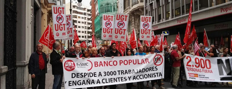 UGT hace un llamamiento al Gobierno y al Ministerio de Empleo y Seguridad Social para que, de la misma manera que a través del FROB (Fondo de Reestructuración Ordenada Bancaria) han decretado la venta de Banco Popular por 1€ a Banco de Santander, tomen las medidas necesarias para evitar que esta operación financiera suponga destrucción de empleo.