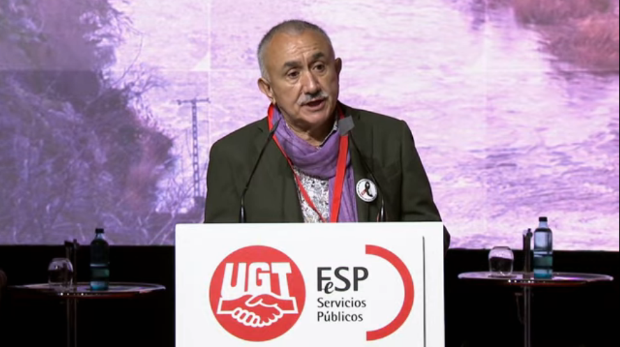 Pepe Álvarez ha realizado estas declaraciones durante su intervención en la clausura del I Congreso de la Federación de los Empleados y Empleadas de los Servicios Públicos (FeSP-UGT), que ha reelegido a Julio Lacuerda al frente de la Secretaría General y ha incorporado en su ejecutiva, como Secretaria de Acción Sindical, a la Secretaria Confederal de UGT, Isabel Araque, donde ha señalado que este gran pacto “no será fácil, ya que el primer escollo es la política fiscal. La derecha de este país debería empezar a los ciudadanos que un país que no paga impuestos no puede dar unos servicios públicos de calidad, no puede ayudar a sus empresas. El sistema impositivo español es débil, frágil, y no nos permite distribuir la riqueza ni tener oportunidades. Sin igualdad no hay libertad. Y la igualdad empieza en las escuelas, en los centros de salud. Por eso es tan importante tener un sistema fiscal justo y autosuficiente”.