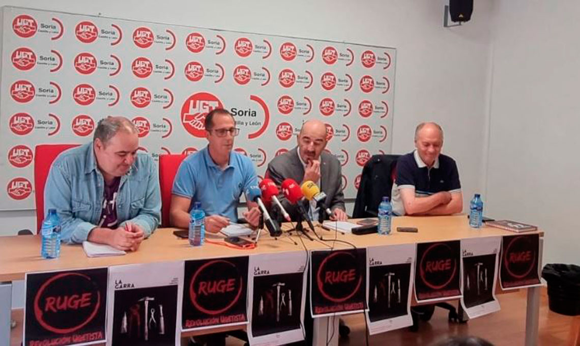 El vicesecretario general de Política Sindical de UGT, Fernando Luján, visitó ayer las Brigadas de Refuerzo en Incendios Forestales en Lubia (Soria), donde se celebró una asamblea, pero anteriormente participó en una rueda de prensa en la que participaron el secretario general de UGT Castilla y León, Faustino Temprano, el secretario general de UGT Servicios Públicos de Castilla y León, Tomás Pérez y el secretario general de UGT Servicios Públicos de Soria, Alberto Lozano.