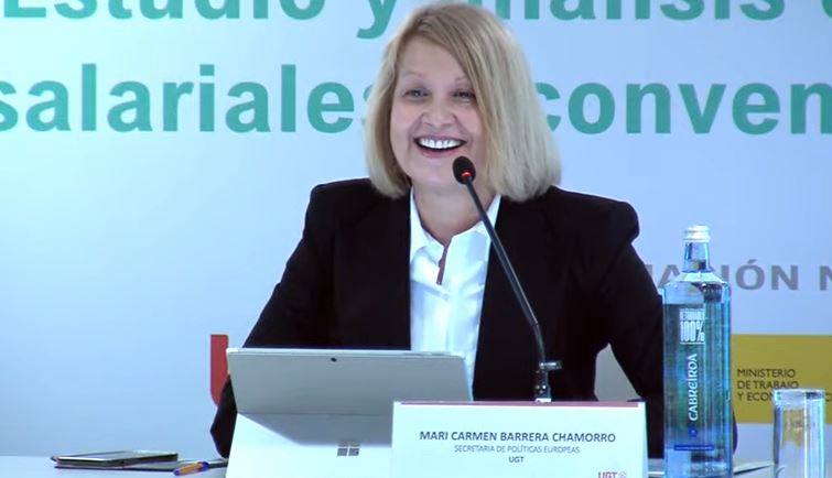La Secretaria de Políticas Europeas de UGT, Mª Carmen Barrera, ha intervenido hoy en las Jornadas Confederales de Negociación Colectiva del sindicato moderando una mesa sobre la reivindicación de la semana de 32 horas en la que ha participado también Gonzalo García, Secretario de Estado de Economía y Apoyo a la Empresa.