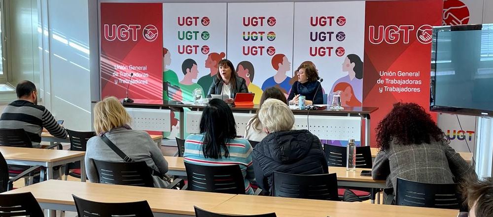 La vicesecretaria general de UGT, Cristina Antoñanzas y Menchu García, técnica del Departamento Confederal de la Mujer, han presentado el informe La subida del SMI acorta los plazos para lograr la igualdad salarial elaborado por el sindicato en el marco del Día por la Igualdad Salarial que tiene lugar el 22 de febrero.