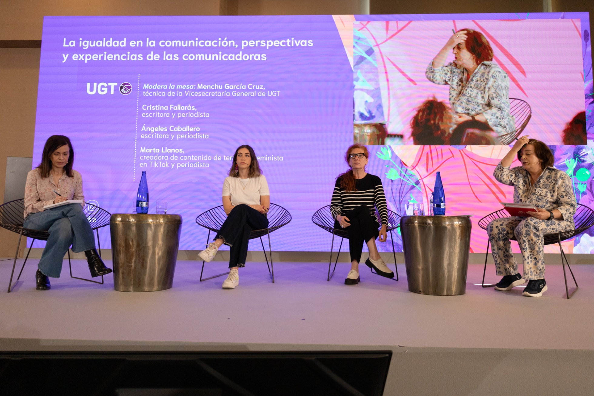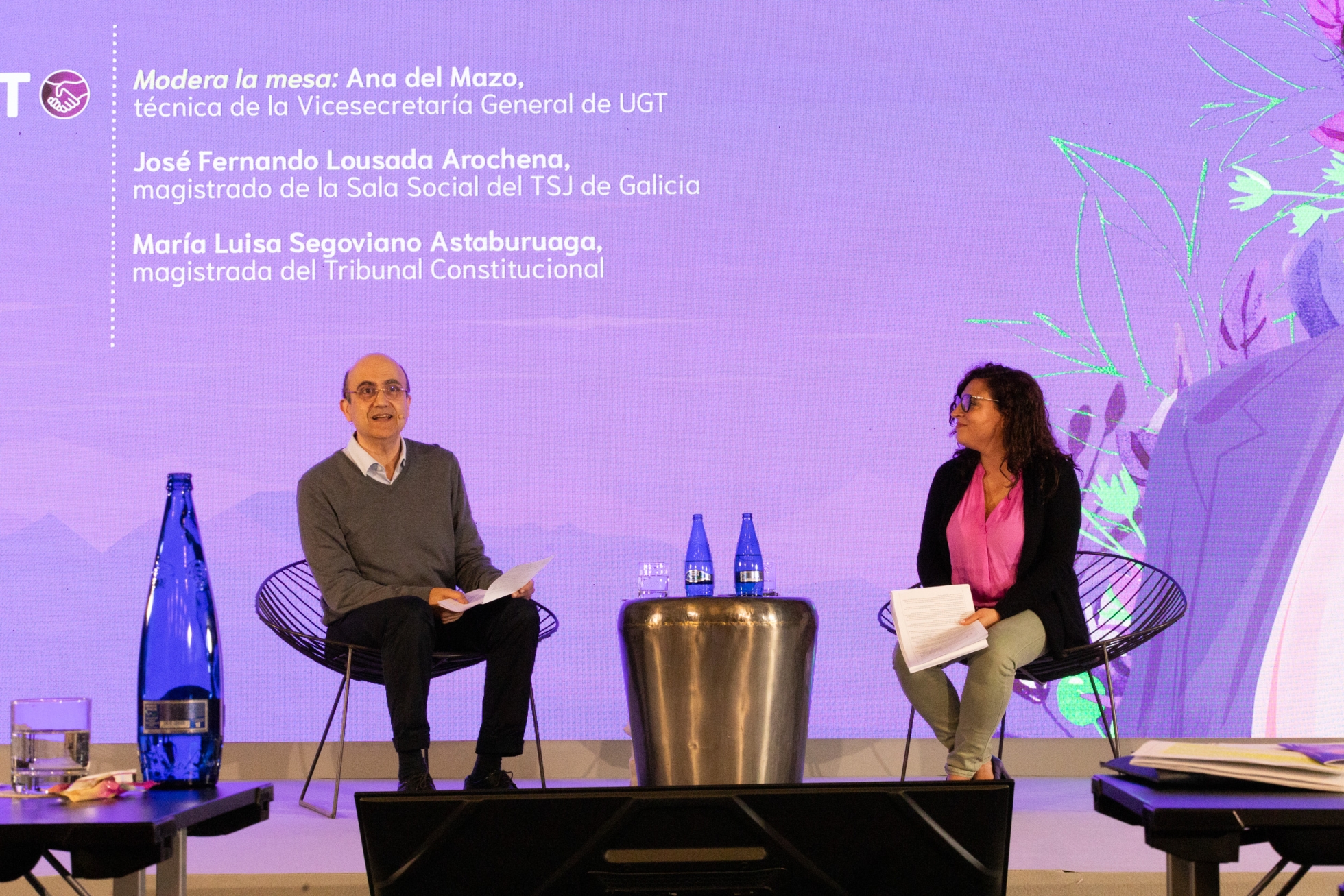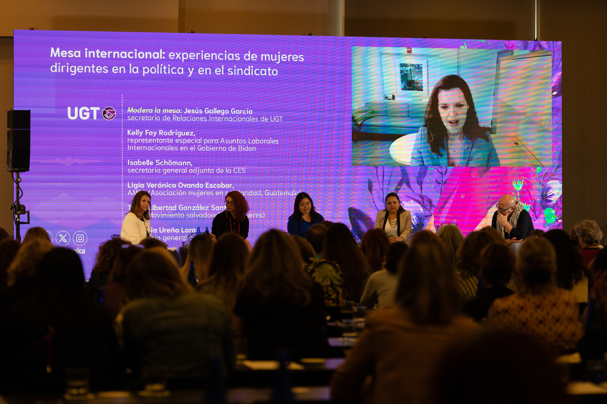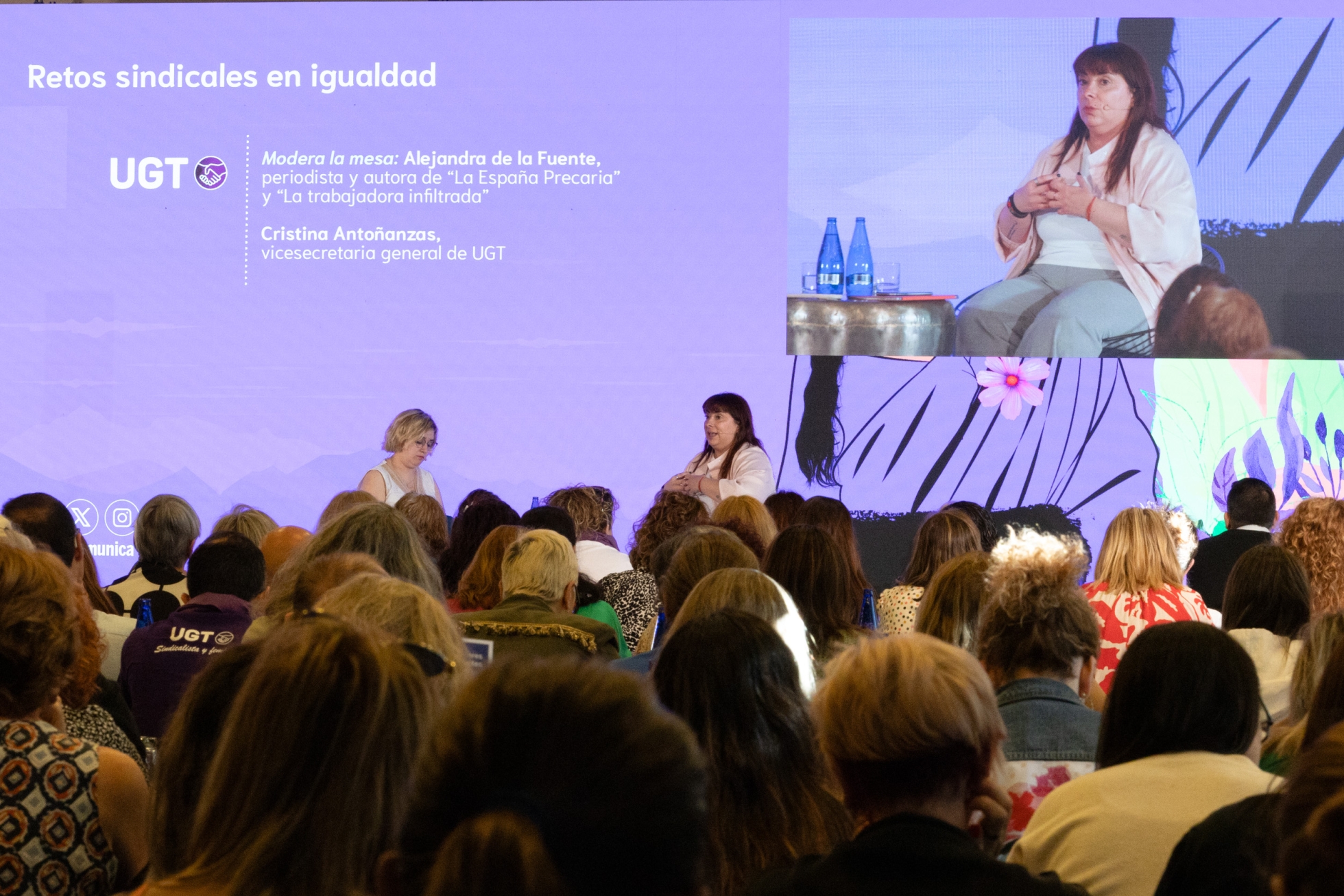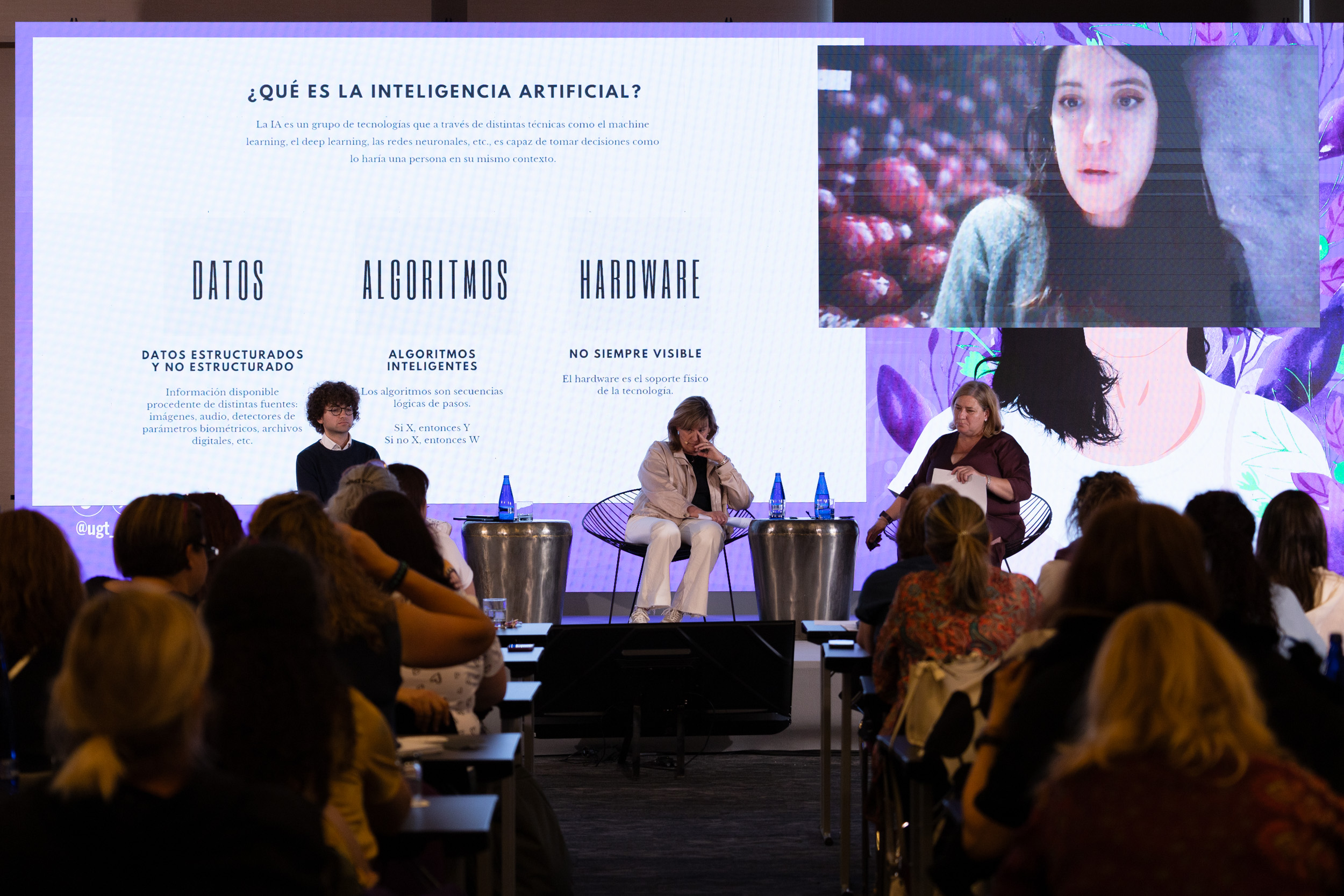 II Encuentro de mujeres dirigentes Alcalá de Henares, 22, 23 y 24 de mayo de 2024 Representantes de UGT atienden a medios Antoñanzas, Rodríguez Zapatero, Álvarez y Prieto en el photocall Cristina Antoñanzas presenta el encuentro Marina Prieto inaugura el encuentro Judith Piquet, alcaldesa de Alcalá de Henares La delegada del Gobierno contra la Violencia de Género interviene Pepe Álvarez, secretario general de UGT en la apertura del encuentro Cristina Antoñanzas y José Luis Rodríguez Zapatero Pepe Álvarez y José Luis Rodríguez Zapatero La igualdad entre mujeres y hombres en el ámbito laboral Sonia Álvarez Enríquez modera la mesa Cristina Antoñanzas y Antonio López Isabelle Schöman, secretaria general adjunta de la CES Ligia Verónica Ovando, en representación de AMES y Tania Libertad González, miembro de MSM Mesa Internacional Isabelle Schöman y Jordania Ureña, secretaria general adjunta de la CSI Kelly Fay participa en la mesa por videoconferencia Jesús Gallego, secretario de Relaciones Internacionales UGT Kelly Fay Rodríguez representante especial de Asuntos Laborales Internacionales en el Gobierno de Biden Integrantes de la mesa Internacional se despiden Cristina Antoñanzas, vicesecretaria general de UGT Retos sindicales en igualdad Las personas en el centro de la economía. El valor de los cuidados Cecilia Castaño Collado, catedrática de Economía Aplicada UCM Luz Martínez Ten, secretaria de Mujer y Políticas Sociales de FeSP-UGT Cristina Castellanos Serrano, doctora en Economía en la UNED Los nuevos permisos y su debate jurídico Ana del Mazo, técnica de la Vicesecretaría General de UGT, modera la mesa José Fernando Lousada Arochena, magistrado de la Sala Social del TSJ de Galicia La inteligencia artificial y su impacto de género Antoni Mestre Gascón, ingeniero informático y doctorado en IA humanista Carmen Sáez Lara, catedrática de Derecho de la Universidad de Córdoba Modera Fátima Gallardo Sáez, secretaria de Igualdad y Política Social FICA-UGT Lucía Ortiz de Zárate Alcarazo, investigadora en Ética y Gobernanza de la Inteligencia Artificial en la Universidad Autónoma de Madrid Violencias machistas en el centro de trabajo Clara Sainz de Baranda Andújar, directora del Instituto de Estudios de Género de la Universidad Carlos III de Madrid Fernando Vicente Pachés, profesor titular de Derecho del Trabajo y de la Seguridad Social de la Universitat Jaume I de Castellón Modera la mesa Raquel Galiana Vozmediano, responsable del Área de Mujer de FeSMC-UGT La igualdad en la comunicación, perspectivas y experiencias de las comunicadoras Modera Menchu García Cruz, técnica de la Vicesecretaría General de UGT Cristina Fallarás, escritora y periodista Ángeles Caballero, escritora y periodista Marta Llanos, creadora de contenido y periodista Cristina Antoñanzas atiende a medios Las ponentes posan en el photocall Cristina Antoñanzas y Yolanda Díaz La vicesecretaria general de UGT en la clausura Yolanda Díaz interviene Fernando Luján, vicesecretario general de Política Sindical Pincha aquí para ver todas las imágenes de la conferencia