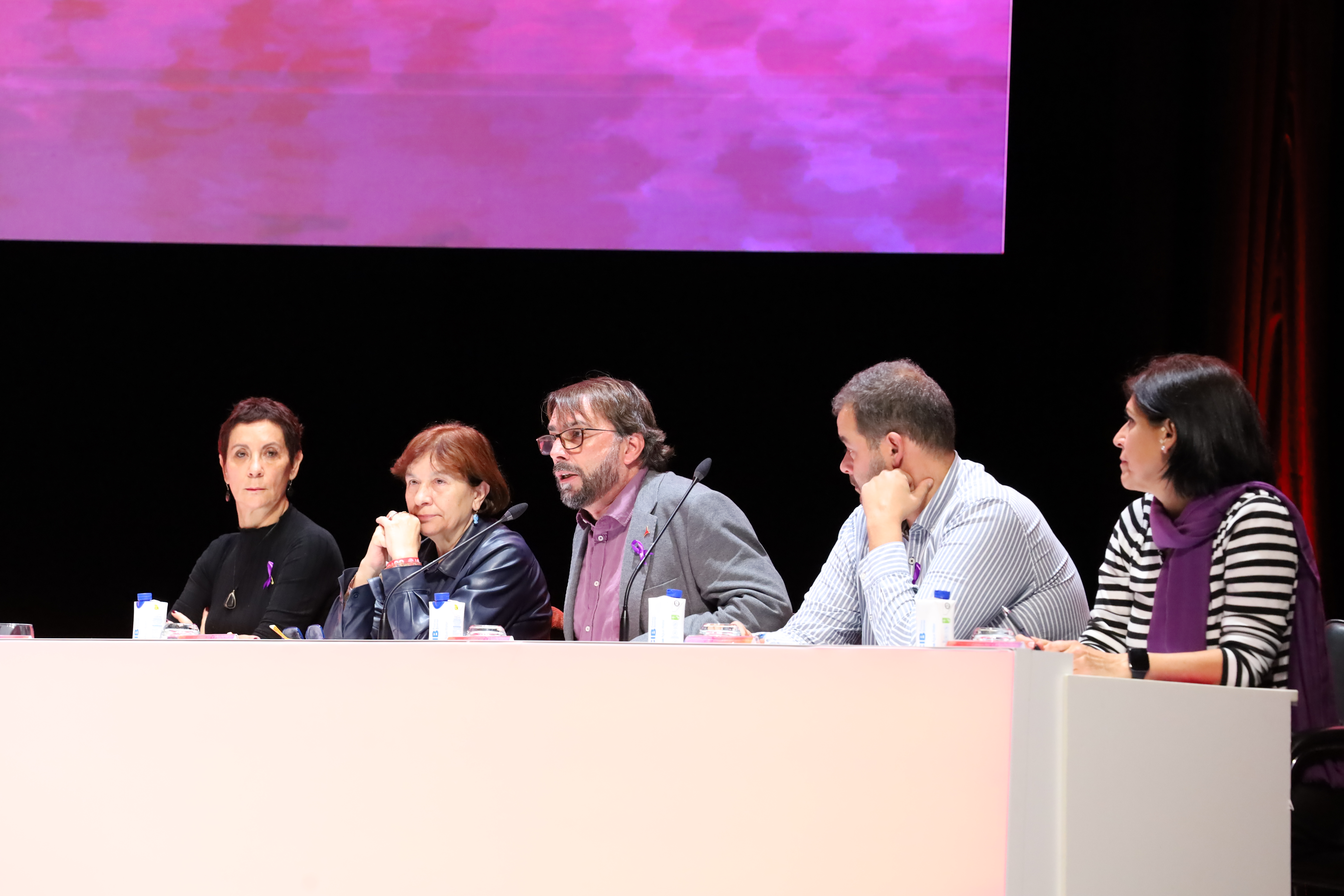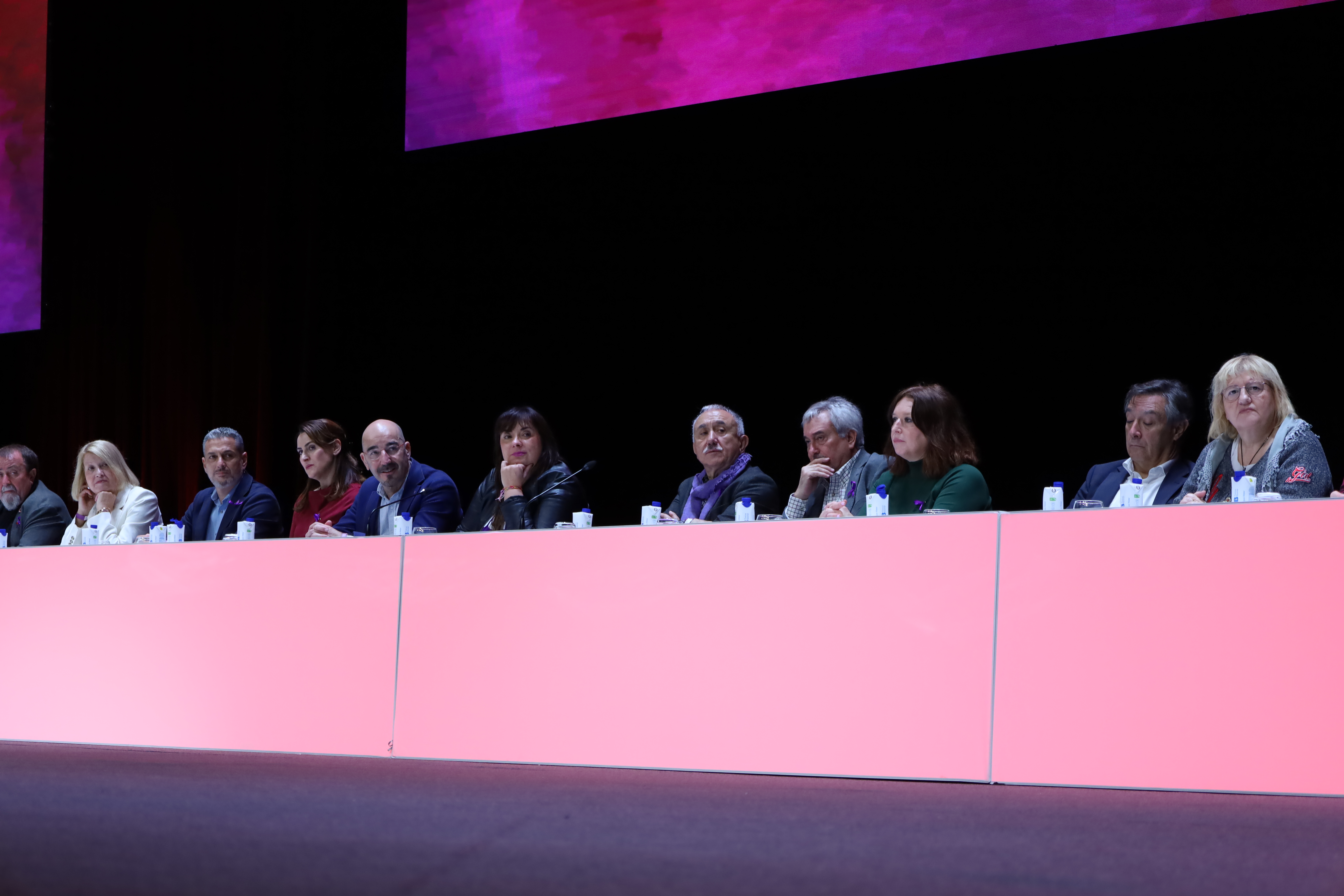 Los miembros de la Comisión Ejecutiva Confederal toman asiento en el escenario