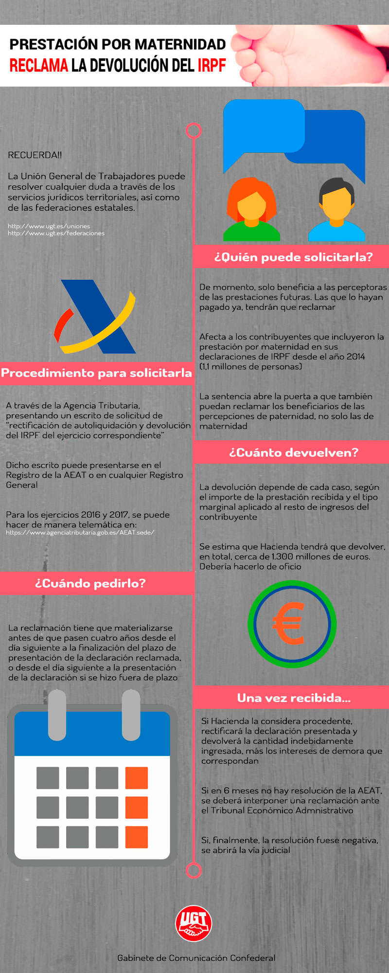 Año 2018 Categoría Igualdad Area Igualdad Archivos prestacion_por_maternidad_reclama_devolucion_irpf_ugt.jpg (0 bytes) Tipo Infografía