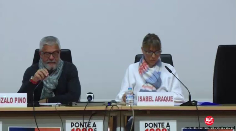 Intervención de Gonzalo Pino, Secretario de Política Sindical de UGT, e Isabel Araque, Secretaria Confederal de UGT, en la presentación Jornada SIMA realizada en la Escuela Julián Besteiro.