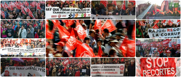En la manifestación de Madrid, en la había trabajadores de empresas duramente afectadas por la crisis como Coca-cola, Telemadrid o Airbus, entre otras, el Secretario de Acción Sindical de UGT, Toni Ferrer, ha señalado que las movilizaciones son “una de las consecuencias de que la Unión Europea está en malas manos porque las políticas de austeridad que han impuesto han provocado el aumento masivo del desempleo, el sufrimiento, la desigualdad y la pobreza”.