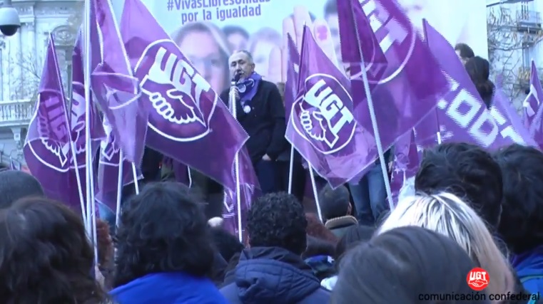 Intervenciones de Pepe Álvarez, Secretario General de UGT, en la jornada de huelga general de dos horas por turno del día 8 de marzo de 2018