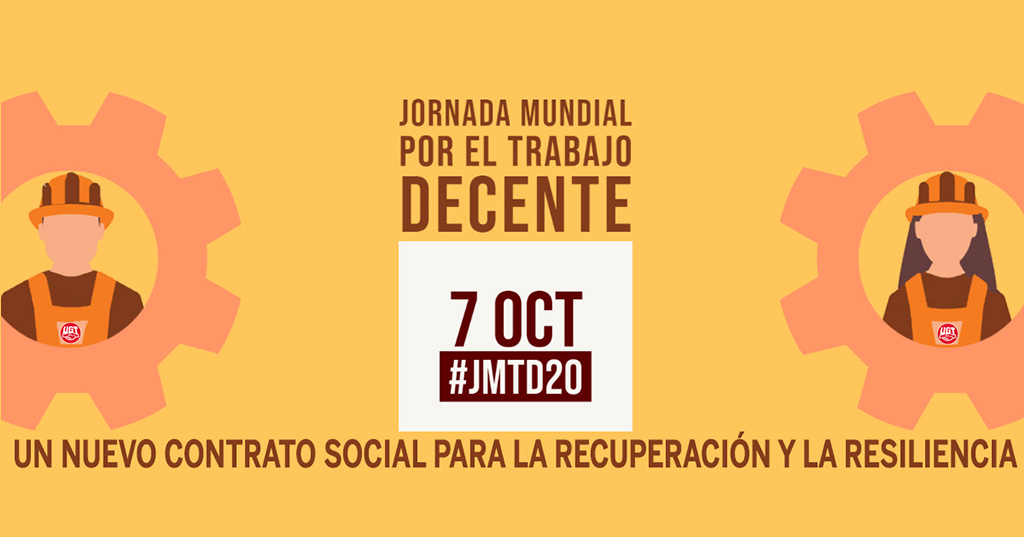 La Confederación Sindical Internacional (CSI) ha convocado para el 7 de Octubre de 2020 la 13ª Jornada Mundial por el Trabajo Decente, que este año tiene como objetivo exigir que los planes de reconstrucción, que están poniendo en marcha los Estados y organizaciones como la UE, tengan como elemento central el trabajo decente y se dé prioridad a las personas.