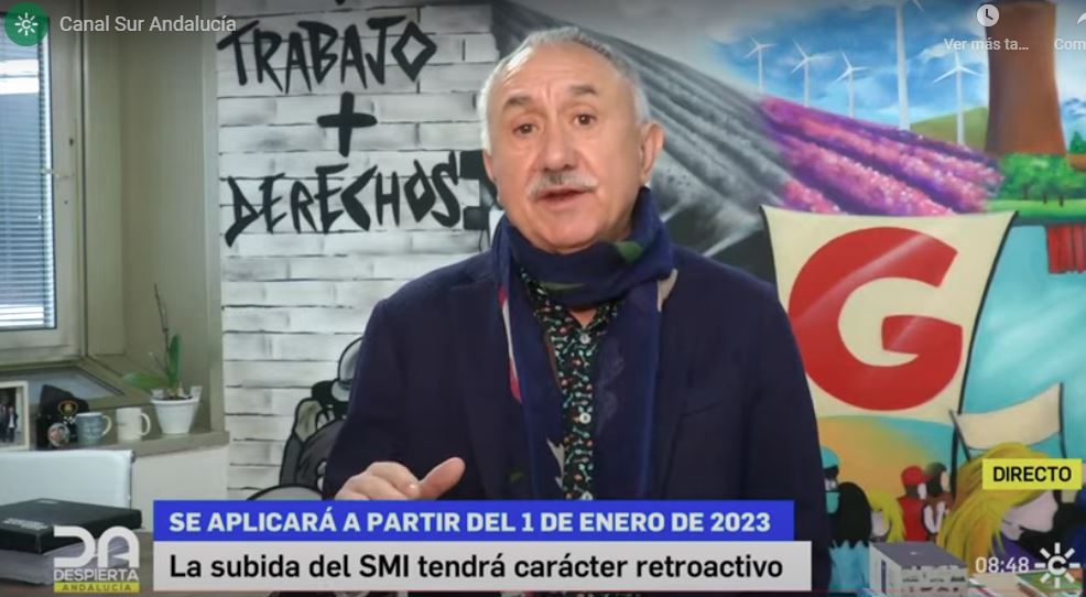 Pepe Álvarez, que ha sido entrevistado en el programa "Despierta Andalucía", de Canal Sur TV, considera que Andalucía será una de las Comunidades más afectadas por la subida del SMI