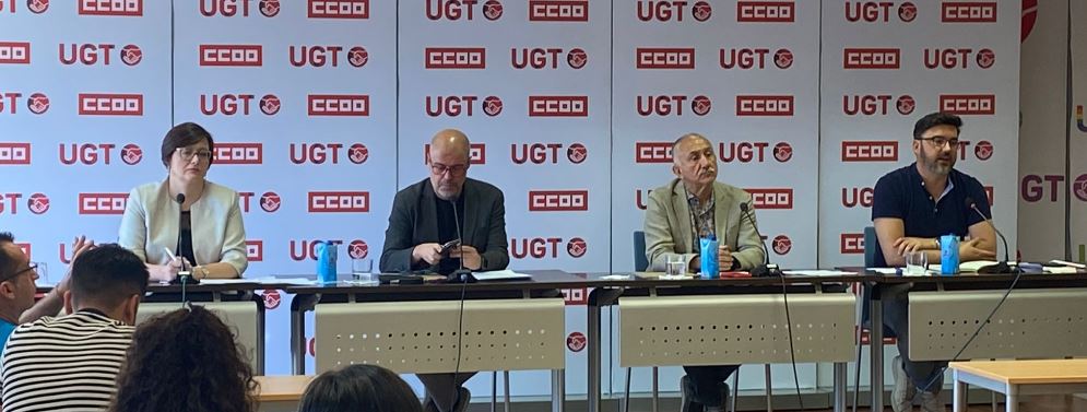 Los Secretarios Generales de UGT y CCOO, Pepe Álvarez y Unai Sordo, han presentado en rueda de prensa, un acuerdo para la coordinación y el trabajo conjunto de cara a la eliminación de la discriminación sufrida por las personas LGTBI+.