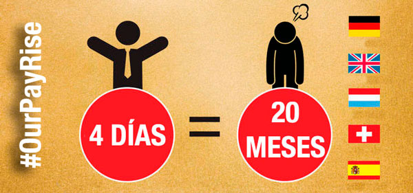Para la Unión General de Trabajadores, resulta intolerable que la recuperación económica no esté repercutiendo en los sueldos de las trabajadoras y trabajadores y se siga repartiendo exclusivamente entre las empresas, también a nivel europeo. Por ello, el sindicato exige un aumento de los salarios en nuestro país, hasta llegar a los 1.000 euros como mínimo por convenio, para recuperar el poder adquisitivo perdido durante estos años y aumentar el consumo y la demanda interna.