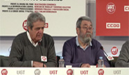 José Ricardo Martínez (UGT-Madrid), Jaime Cedrún (CCOO-Madrid), Cándido Méndez
