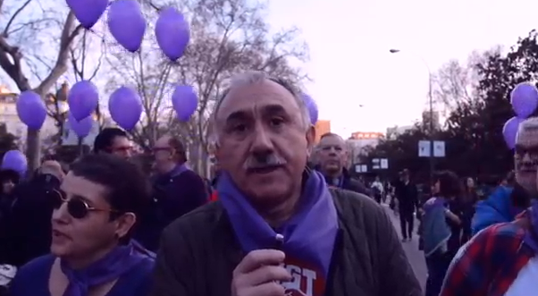 Declaraciones de ejecutivas y ejecutivos de UGT en el transcurso de la manifestación del Día Internacional de la Mujer, celebrada en Madrid el día 8 de marzo de 2017