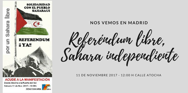 UGT apoya la manifestacion que se desarrollará mañana,a las 12 en Madrid, desde la calle Atocha hasta la Puerta del Sol, bajo el lema “Exijamos a la ONU que imponga a Marruecos las Resoluciones internacionales y el respeto a los DDHH. Referéndum en el Sahara YA“, y “Por un Sahara libre, Referéndum ya !!”, “Basta del saqueo de los Recursos naturales del Sahara".