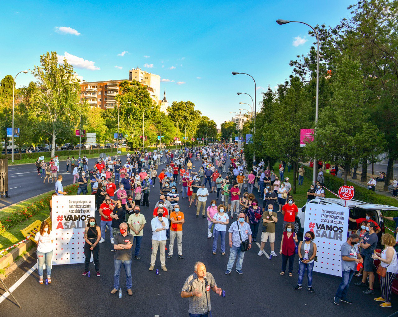 Los ciudadanos y ciudadanas españoles han salido a la calle hoy en las más de medio centenar de concentraciones para exigir un Pacto para Reconstrucción Social de España, bajo el lema “Vamos a salir".