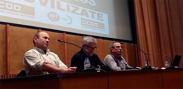 Gonzalo Pino ha realizado estas declaraciones previas a la asamblea de delegados y delegadas de UGT en Aragón, donde ha señalado que no existe diálogo social ni en materia de empleo, ni en pensiones ni en salarios, donde “se ha impuesto un Salario Mínimo Interprofesional que mantiene a los trabajadores en el umbral de la pobreza”.