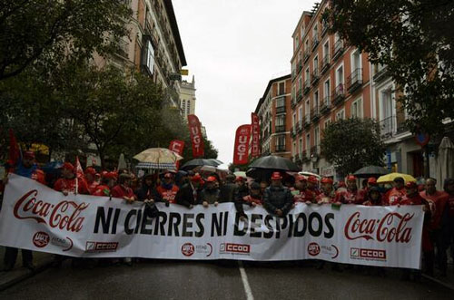 Una multitudinaria manifestación no solo por los 1.253 trabajadores “que tienen en peligro su puesto de trabajo”, como señaló el Secretario General de UGT, Cándido Méndez, sino también “por los 4.270 trabajadores que integran la plantilla total de la empresa, que están afectados también y que tienen que estar unidos ante una empresa que no es solo la franquicia, sino que también es la casa madre, Coca-Cola Company”.