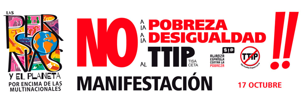 La Alianza Española contra la Pobreza y la campaña #NoalTTIP, de las que UGT forma parte, han convocado en todo el país la Semana de Acciones contra los Tratados de Libre Comercio y la Semana de Lucha contra la Pobreza, que culminarán con una manifestación en Madrid el 17 de octubre a las 18:00, el Día Internacional para la Erradicación de las Causas de la Pobreza.