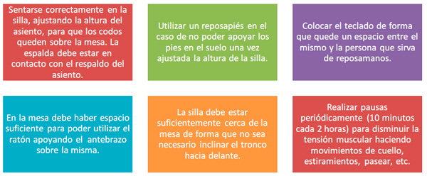 Las posturas estáticas que los trabajadores adoptan para trabajar ante las PVD pueden llegar a generar molestias en la espalda. Por otra parte, los movimientos repetitivos derivados del uso del ratón y el teclado pueden originar TME localizados en las manos y muñecas del trabajador.
