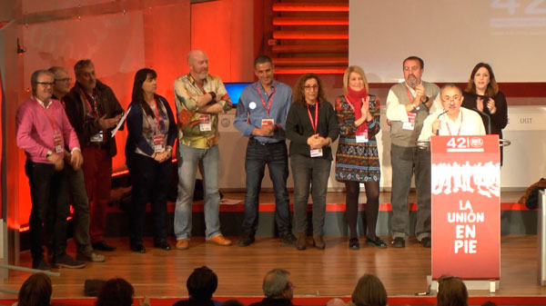Pepe Álvarez presentó esta tarde al equipo que le va a acompañar en la Comisión Ejecutiva Confederal si su candidatura resulta elegida en un acto multitudinario que contó con la presencia de numerosos delegados y delegadas que apoyan su candidatura.