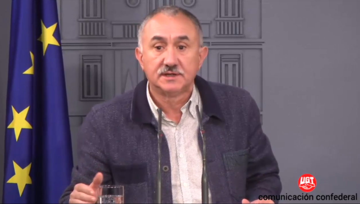 Declaraciones de Pepe Álvarez, Secretario General de UGT, tras la reunión mantenida hoy en La Moncloa entre los interlocutores sociales, la ministra de Empleo, Fátima Báñez y el presidente del Gobierno, Mariano Rajoy.